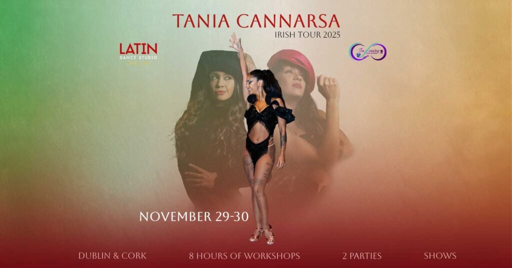 🔥 TANIA CANNARSA – IRISH TOUR 2025 🔥Latin Dance Studio Cork and Infinity Salsa School proudly present Tania Cannarsa — one of the most celebrated stars in the salsa world — live in Ireland!Get ready for an unforgettable weekend filled with workshops, parties, and spectacular shows. 📅 Dates: November 29 – 30, 2025📍 Cities: Dublin & Cork 💃 What to Expect: 8 hours of workshops with Tania Cannarsa 2 amazing parties Exclusive shows 💰 Pass Options: 1 City Pass (Cork or Dublin – 3h): €85 Dublin 3h + Masterclass: €110 Dublin + Cork 6h (no masterclass): €140 Full Pass (Cork + Dublin + Masterclass): €170